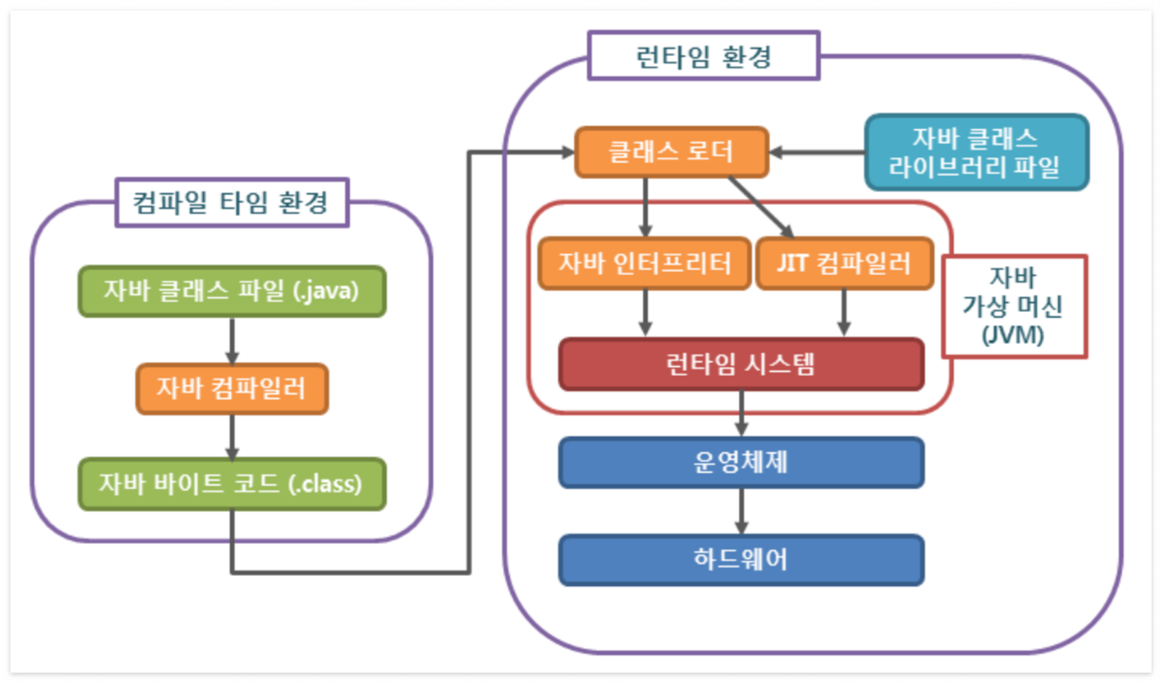 - JIT(Just-In-Time) 컴파일러: 바이트코드를 런타임에 기계어로 변환하여 성능을 높인다.