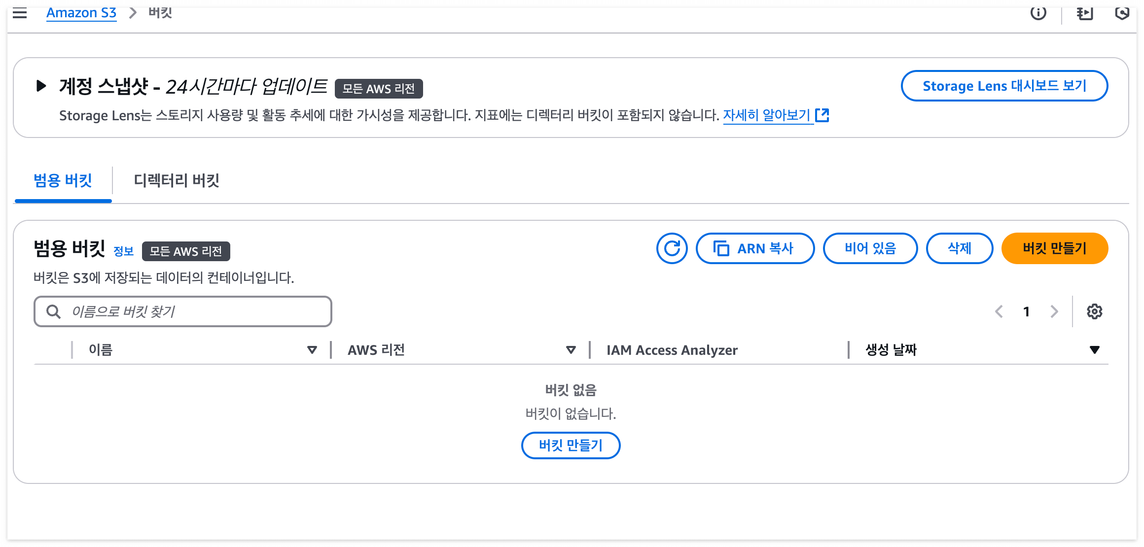 여기까지 완료되었다면 아래로 내려가 "버킷 만들기"를 진행한다.
