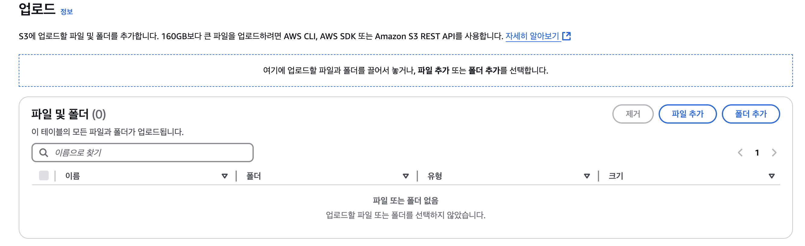 세팅이 완료되었다면 이제 빌드 파일을 업로드 하면 된다. 업로드 버튼을 눌러 React 빌드 파일을 넣어준다.